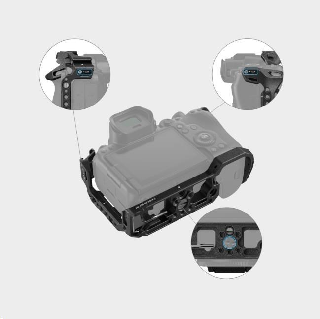 - Otvory pro ramenní &; zápěstní popruh fungují s ručním popruhem SmallRig 3848 nebo ramenním popruhem 2428.