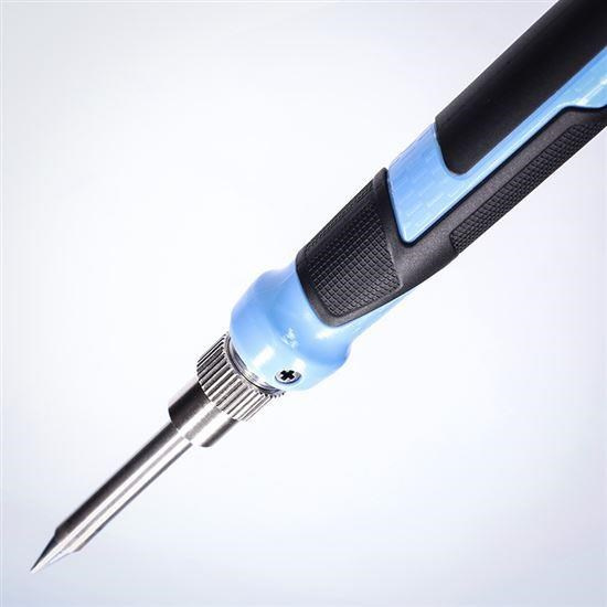 Páječka s LED displejem pro přesné pájení, která zobrazuje nastavenou a aktuální teplotu. Rychlé zahřátí do 8 sekund a výkon 70 W s rozsahem teploty 160 °C–480 °C. Automatický spánkový režim po 10 minutách nečinnosti, který sníží teplotu na 200 °C. Ergonomický design s flexibilním silikonovým kabelem a stojánkem pro bezpečné odkládání. Kalibrace teploty a čisticí houbička pro snadné čištění. Bezpečnostní funkce zahrnují ochranu před přehřátím. Napájení 220–240V, 50Hz, délka napájecího kabelu 1,35m.