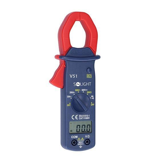 Digitální multimetr s max. zobrazením 2000 hodnot a indikací slabé baterie. Nabízí automatické vypnutí po 15 minutách nečinnosti a akustickou výstrahu před vypnutím. Měří DC napětí (600V), AC napětí (True-RMS, 600V), AC proud (20A - 200A), odpor (20k?), a nabízí test spojitosti s bzučákem (hranice sepnutí <50?). Test diod, funkce Data Hold pro uložení hodnoty na displeji. Ochrana proti přetížení (250V DC/AC RMS). Napájení: 2x AAA baterie (součástí balení). Rozměry: 195 × 70 × 35 mm, hmotnost: 172 g. Norma: EN61010-1, CAT II 600V.