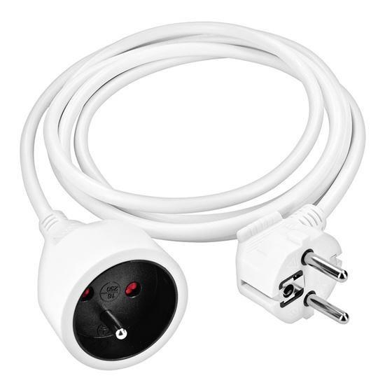 Kompaktní bílý prodlužovací kabel s délkou 1,5 metru a jednou zásuvkou je ideální pro jednoduché prodloužení elektrické energie v domácnosti, kanceláři nebo dílně. Vhodný pro připojení samostatného zařízení mimo dosah pevné zásuvky.