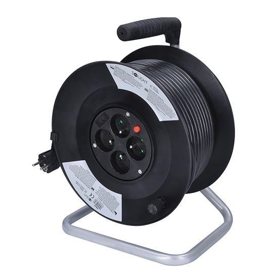 PVC kabel s vodiči o průřezu 3×1,5 mm2 je vhodný pro vnitřní a suché chráněné prostory.Buben je vybaven čtyřmi zásuvkami s dětskými pojistkami, navíc i tepelnou pojistkou, která přeruší napájení v případě přetížení nebo při použití bez úplného odvinutí kabelu.
