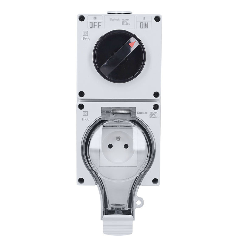 Profesionální zásuvka 230V~/16A s vypínačem a ochranou IP66