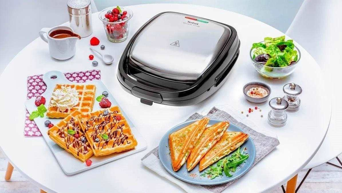 Tefal Snack Time 2 v 1, multifunkční přístroj s kovovou vložkou pro přípravu trojúhelníkových toustů a vaflí, představuje jedinečné řešení, které spojuje sendvičovač a vaflovač pro vždy dokonale sladké i slané chuťovky. Navíc jeho kovový vzhled dodá výrobku prémiový design.