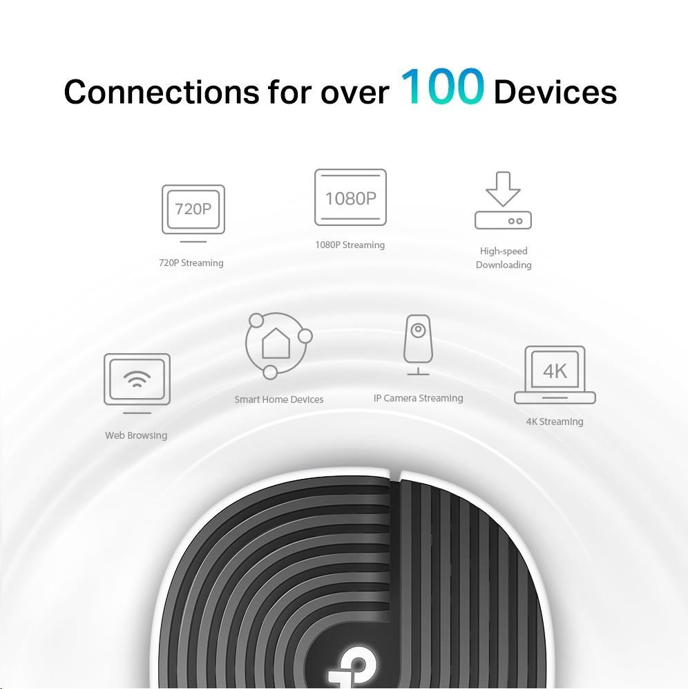 - Připojení více než 100 zařízení – Deco si poradí s datovými přenosy i v těch nejrušnějších sítích a zajistí spolehlivé připojení pro více než 100 zařízení.