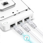 - Čtyři gigabitové porty: 4 gigabitové ethernetové porty (1× odchozí + 3× příchozí), přičemž jeden z příchozích portů podporuje technologii PoE, která poskytuje elektrické napájení pro připojené zařízení.