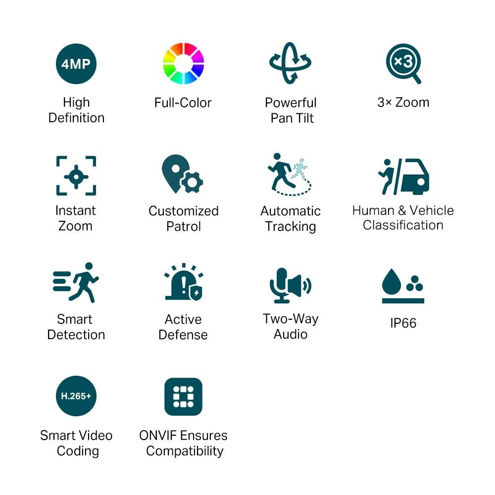 - Aktivní obrana: Okamžitě varujte potenciální vetřelce zvukem a světlem v případě abnormálních událostí.