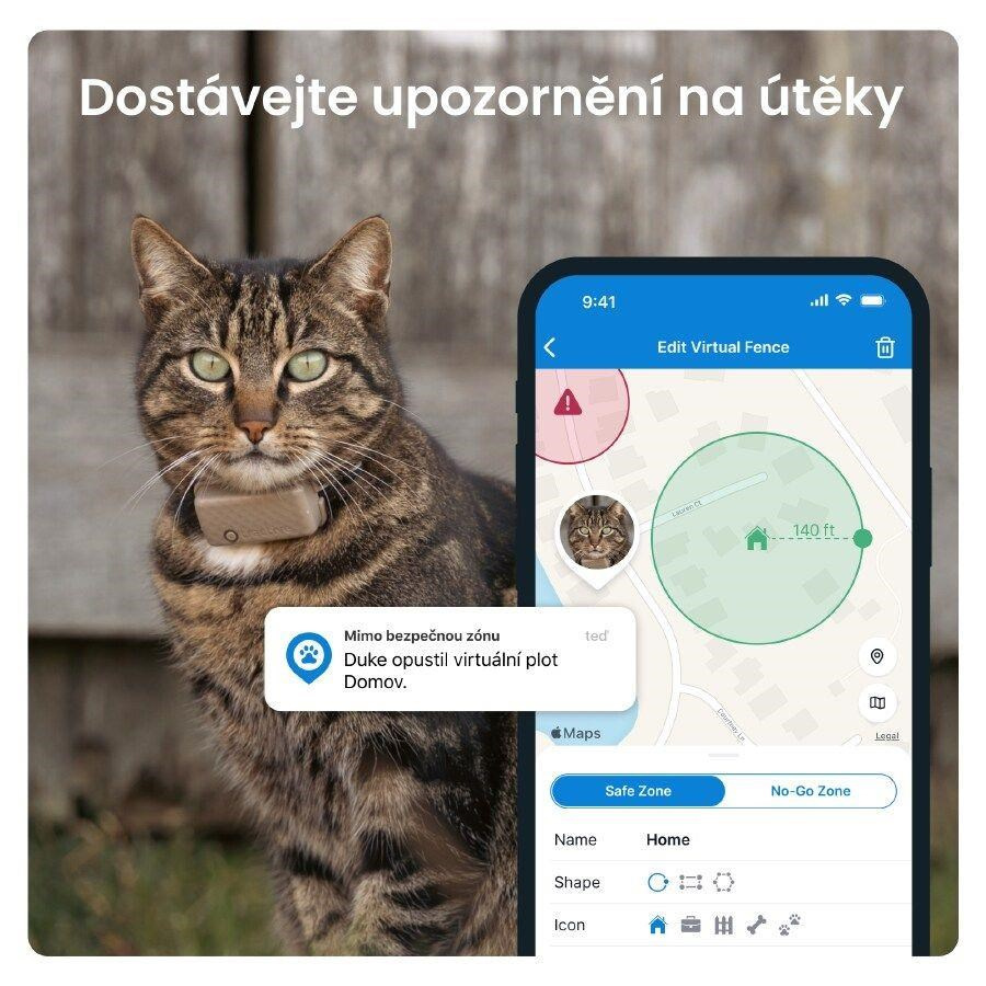 Tractive CAT Mini nejlepší GPS tracker kočky, který vašemu kočičímu příteli zajistí bezpečí. Budete dostávat okamžitá upozornění, když uteče, objevíte jeho území díky Historii polohy a můžete ho sledovat v reálném čase.Také můžete sledovat úroveň jeho spánku a aktivity, dostávat zdravotní upozornění a sledovat denní Skóre kondice. S GPS pro kočky rovněž zdarma dostanete bezpečnostní obojek Rogz a dvě různé spony pro upevnění.
