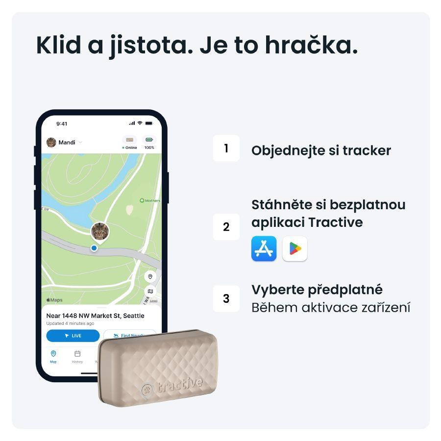 **Cena s předplatným na 2 roky a jednorázovou platbou předem. Ceny se mohou změnit. Nejnovější informace najdete na adrese tractive.com/plans.
