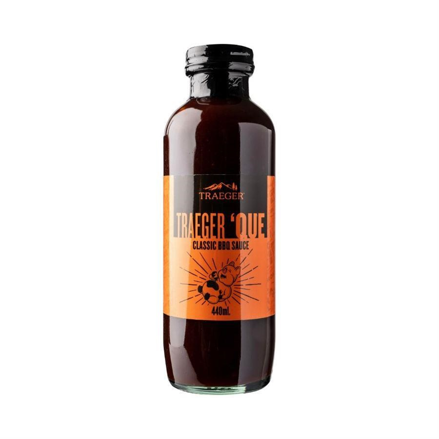 Naše charakteristická omáčka Traeger „Que BBQ Sauce“ se vyznačuje tóny hnědého cukru, kouřového ořechového dřeva a pikantního octa, které jí dodávají klasickou chuť, která se skvěle hodí k žebírkům a trhanému vepřovému masu, ale také k téměř čemukoli jinému.