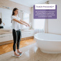 Designu váhy dominuje prémiové tvrzené krycí sklo a 8 vysoce citlivých senzorů. Díky tomu působí minimalisticky, splyne s každým interiérem, a především zajišťuje váze odolnost a dlouhou životnost. Maximální nosnost činí až 180 kg, nastavit si však můžete vážení v librách namísto v kilogramech. Vždy dostanete naprosto přesný výsledek s odchylkou pouze 0,1 kg.