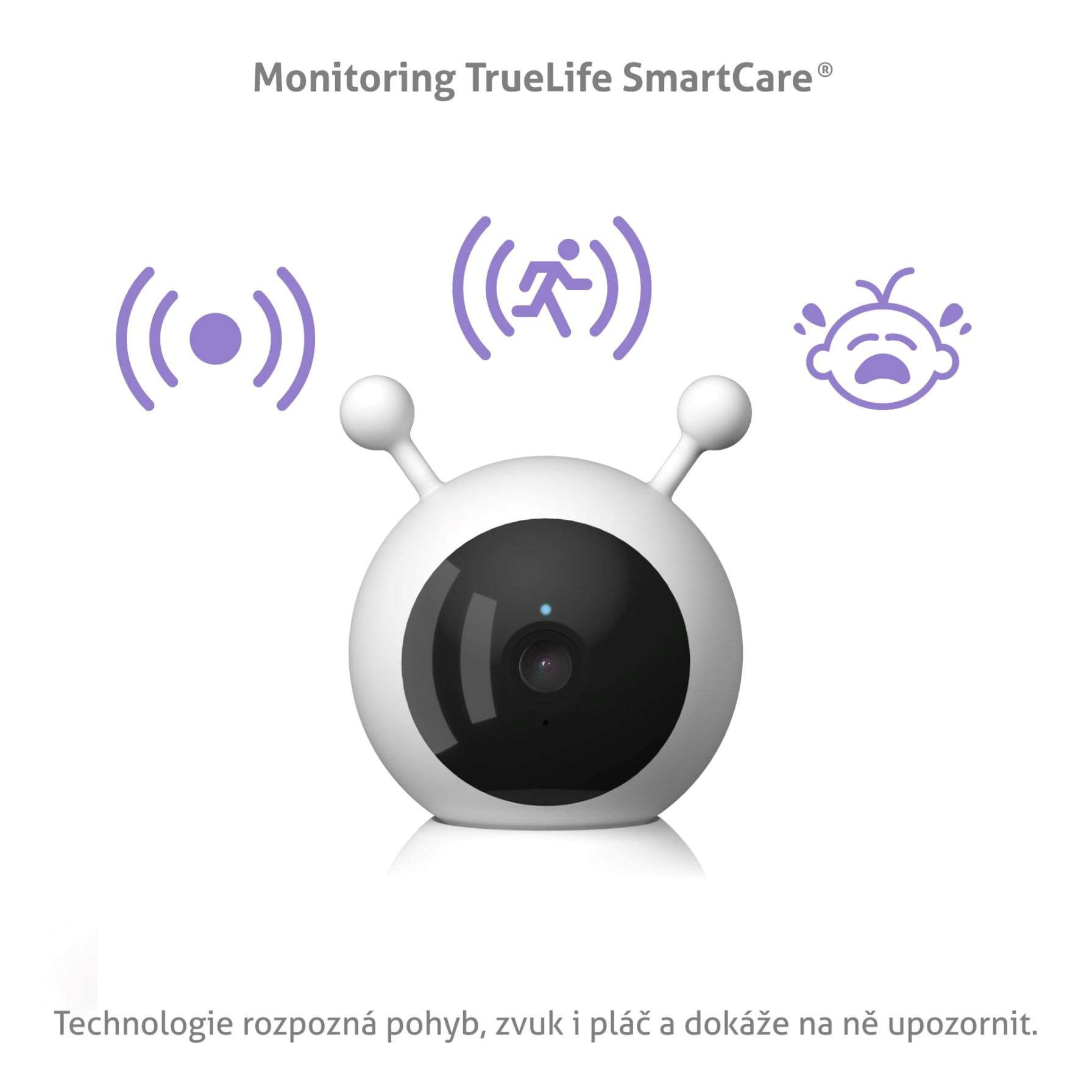 Prostřednictvím duální technologie lze chůvičku párovat na rodičovskou jednotku i chytrý telefon. Chůvičku tedy lze použít v prostředí domova s rodičovskou jednotkou. Pokud je pro vás ale zrovna pohodlnější sledovat dítě odjinud, díky aplikaci TrueLife Smart, která je kompletně v českém jazyce, získáte neomezený dosah a v aplikaci tak můžete vše sledovat odkudkoliv. Praktické je sdílení účtu s více členy domácnosti, kdy má o dítěti přehled i partner nebo třeba prarodiče. Počet uživatelů není omezen. Nemusíte se však bát nepovolaných pozorovatelů. Aplikace využívá pětivrstvé šifrovací technologie zajišťující bezpečnost chytrých zařízení, aniž by hrozil únik informací.