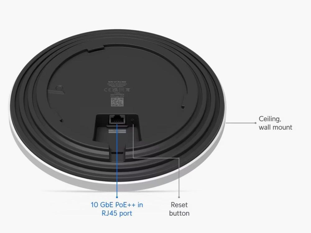 Popis produktu Ubiquiti U7 Pro XGS je nový WiFi 7 UniFi AP. Jedná se o tri-band access point s rychlostí přenosu 5,8Gbps v pásmu 6GHz, až 8,6Gbps v 5GHz pásmu a až 688 Mbps v pásmu 2,4GHz a pokročilým šifrováním WPA3. U7-Pro-XGS je určeno k WiFi pokrytí vaší domácnosti, kanceláře, hotelových prostor nebo skladu s podporou až 500+ připojených klientů. Plná podpora roamingu zajišťuje plynulé předávání připojených klientů mezi jednotlivými AP. Pro připojení do sítě je AP vybaveno 10G ETH portem, který slouží i pro napájení pomocí PoE 802.3at nebo pasivním PoE v rozsahu 42,5-57V DC, PoE injektor není součástí balení. Výhody UniFi řešení • Roaming - přechod mezi jednotlivými AP bez výpadků • Wireless uplink – ideální pro místa, kam nelze přivést datový kabel • Až 8 SSID • Detailní statistiky provozu • Guest síť • Load balancing - udržování rovnoměné zátěže / přepínání klientů • Omezování rychlosti pro každé SSID Obsah balení • Zařízení • Kit k přichycení na strop • Sada šroubků Technické parametry Bezdrátové vlastnosti Bezdrátové frekvence:2.4 + 5 + 6 GHz (triple band) WiFi standardy:802.11n, 802.11a, 802.11ac, 802.11b/g, 802.11ax, 802.11be MU-MIMO:Ano Přenosová rychlost - 5GHz [Mb/s]:8600 Přenosová rychlost - 2.4GHz [Mb/s]:688 Přenosová rychlost - 6GHz [Mb/s]:5800 Vysílací výkon 2.4GHz [dBm]:23 Vysílací výkon 5GHz [dBm]:29 Vysílací výkon 6GHz [dBm]:24 Šifrování:WPA, WPA2, WPA3 2.4GHz MIMO:2 x 2 5GHz MIMO:4 x 4 6GHz MIMO:2 x 2 Typ antény:Vestavěná Počet vestavěných antén:8 Roaming:Ano Zisk antény [dBi]:6, 4 Konektory a rozhraní Rychlost LAN:(1) 100M/1G/2.5G/5G/10G Gigabit LAN:Ano Napájení Napájení přes PoE:802.3at, 42 .. 57V DC Typy PoE:PoE-In (pouze) Max. spotřeba energie [W]:29 Fyzické charakteristiky Použití:Vnitřní Tlačítka:Reset Provozní teplota [°C]:-30 až 40 Hmotnost [g]:800 Šířka [mm]:215 Výška [mm]:215 Hloubka [mm]:33 Software Operační mód:Access Point Výchozí IP adresa:192.168.1.20, Dynamická z DHCP.