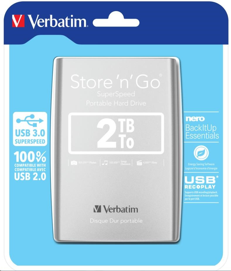 VERBATIM HDD 2.5" 2TB Store 'n' Go USB 3.0, Silver