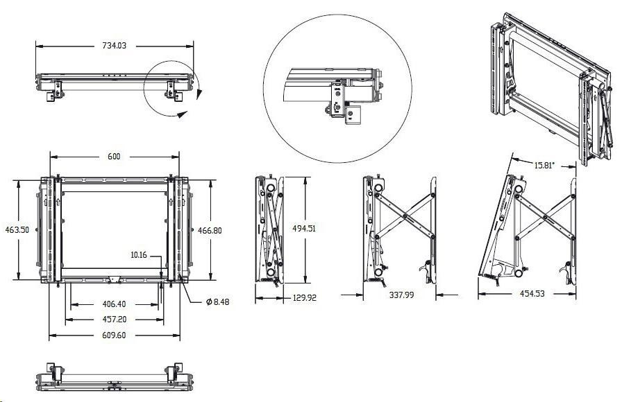 Systém pro montáž videostěny z displejů o hmotnosti do 72kg. Je vybaven pružinovým mechanismem, který po zatlačení vysune displej na nůžkovém mechanismu o 21 cm vpřed pro snadnou výměnu a servis jednotlivých prvků videostěny