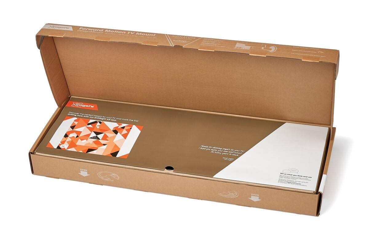 TV držák DesignMount má důmyslný čtyřramenný mechanismus s dlouhými a silnými nosnými rameny. Díky tomu má velký rozsah pohybu dopředu a umožňuje posunout televizor až o 72 cm od stěny. Ideální pro montáž do skříňky nebo výklenku.