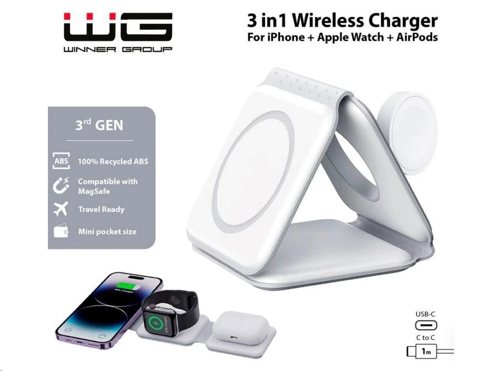 WG - Bezdrátová nabíječka WGMaxFlex 3in1 / Skládací / 15W+5W+2.5W / WG 42 / white