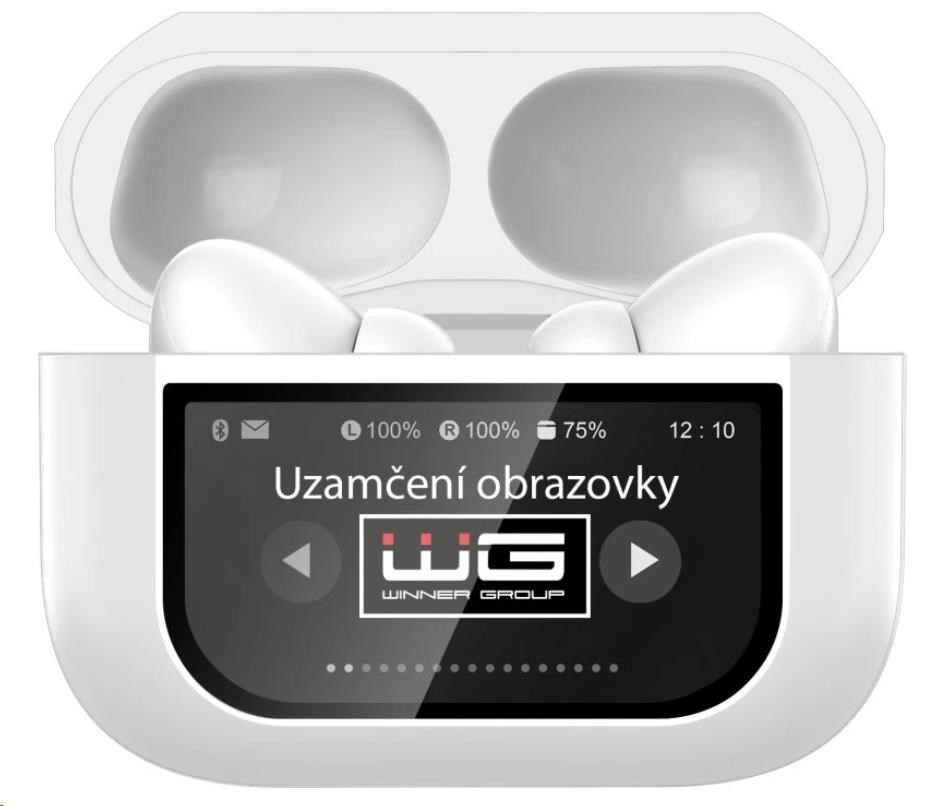 WG - Bluetooth sluchátka WG AirFlex 9 s displejem, Avatar, ANC, bílá