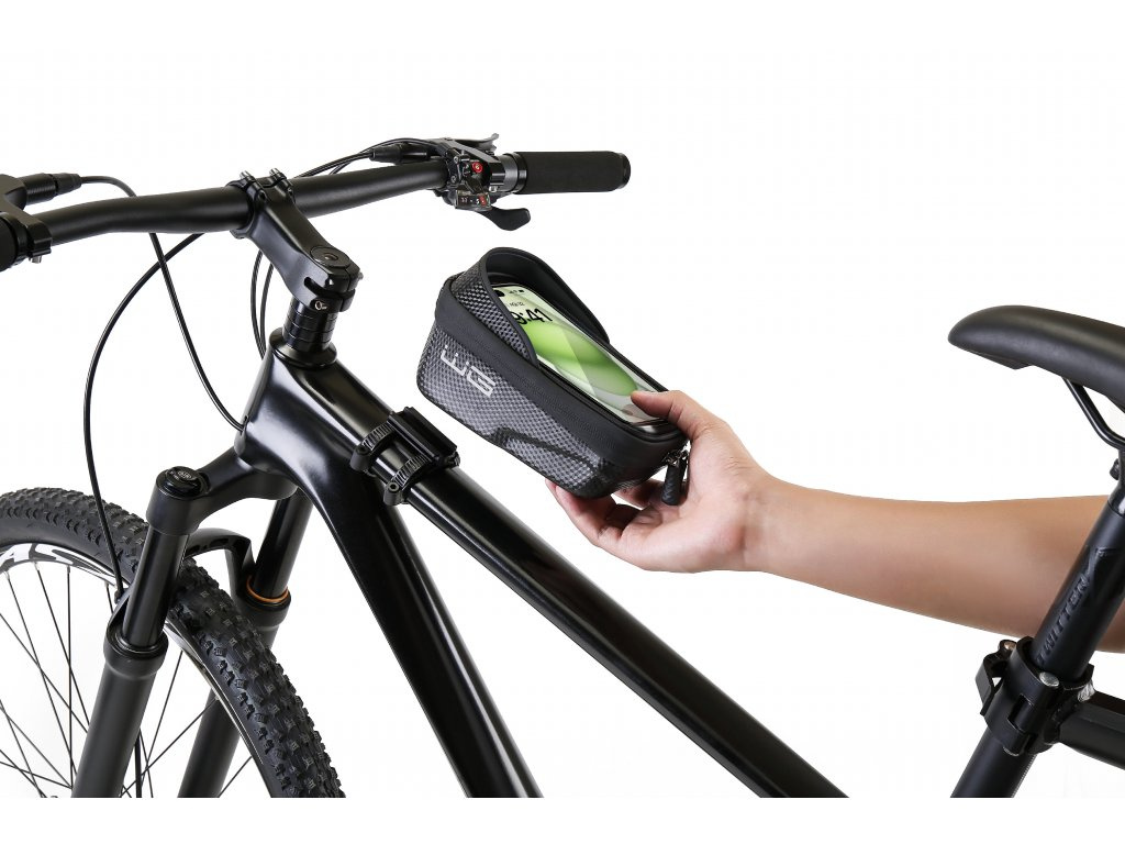 Pro uchycení mobilního telefonu s maximální úhlopříčkou 6,8 " či navigací na řidítka u kola či rám kola. Využívejte při cyklovýletu GPS navigaci, kontrolujte příchozí hovory. Zařízení s maximální úhlopříčkou do 6,5 " pohodlně vložíte do černého vystlaného pouzdra, které se uzavírá bezpečně na zip. Celý držák upevníte i sundáte jednoduše, rychle a spolehlivě díky rychloupínacímu systému.
