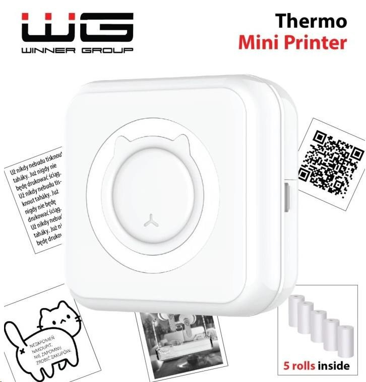 Praktická a stylová mini termotiskárna WG je ideálním nástrojem pro tisk poznámek, seznamů, kreativních obrázků nebo fotografií. Díky kompaktnímu designu a snadné obsluze se hodí na doma, do kanceláře i na cesty.