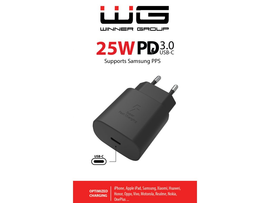 WG - Síťová nabíječka 1x USB-C, PD PPS 25W, černá