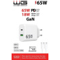 WG - Síťová nabíječka GaN 2x USB 65W, 1x USB-C PD 65W + 1x USB-A QC 3.0 18W, kabel Type-C na Type-C, bílá