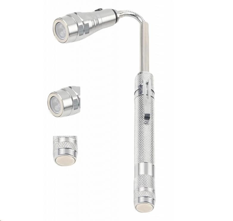 S naší inovativní teleskopickou svítilnou získáte všestranného pomocníka na každém kroku. Tento jedinečný produkt kombinuje svítilnu, výsuvnou teleskopickou tyč s ohebnou částí a užitečné magnety na obou koncích svítilny, což ji činí opravdu multifunkční.