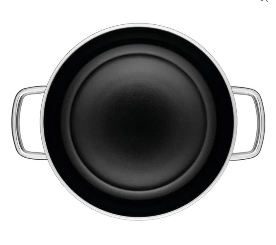 - Materiál Cromargan®: Tělo pánve je vyrobeno z leštěné nerezové oceli 18/10, která je extrémně odolná, chuťově neutrální a snadno se čistí.