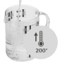 - Tepelně odolné sklo: Vyrobeno z vysoce kvalitního skla, které odolává vysokým teplotám, což umožňuje odměřování horkých tekutin přímo z hrnce.